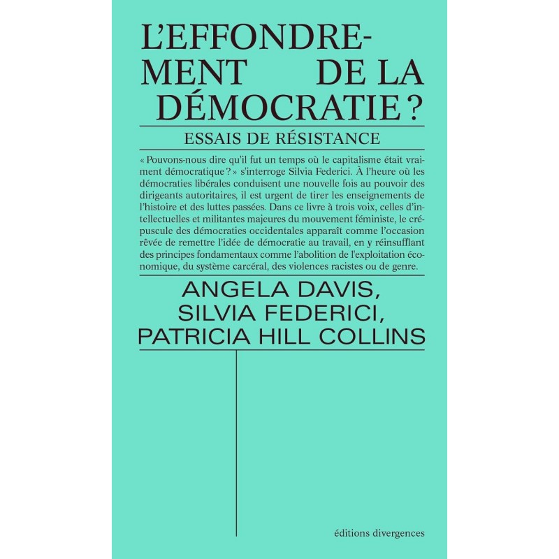 « Pouvons-nous dire qu'il fut un temps où le capitalisme était vraiment démocratique ? » s'interroge Silvia Federici. À l'heure où les démocraties libérales conduisent une nouvelle fois au pouvoir des dirigeants autoritaires, il est urgent de tirer les enseignements de l'histoire et des luttes passées. Dans ce livre à trois voix, celles d'intellectuelles et militantes majeures du mouvement féministe, le crépuscule des démocraties occidentales apparaît comme l'occasion rêvée de remettre l'idée de démocratie au travail, en y réinsufflant des principes fondamentaux comme l'abolition de l'exploitation économique, du système carcéral, des violences racistes ou de genre.