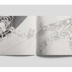 La Belle Sucette (le livre) est né d’un désir collectif d’imaginer la traduction d’une exposition curatée par @sophie_legrandjacques pour le @legrandcafe_saintnazaire vers un objet éditorial faisant à la fois écho à l’expérience d’une traversée de l’espace d’une œuvre de @roykohnke - ici un radôme habité par deux immenses arceaux armés de figures dessinées & huilées, accompagné d’une voix off aux émotions délivrées. Une memoire sensible où le dialogue entre les dessins et le texte se fait au fil du déploiement des pages.