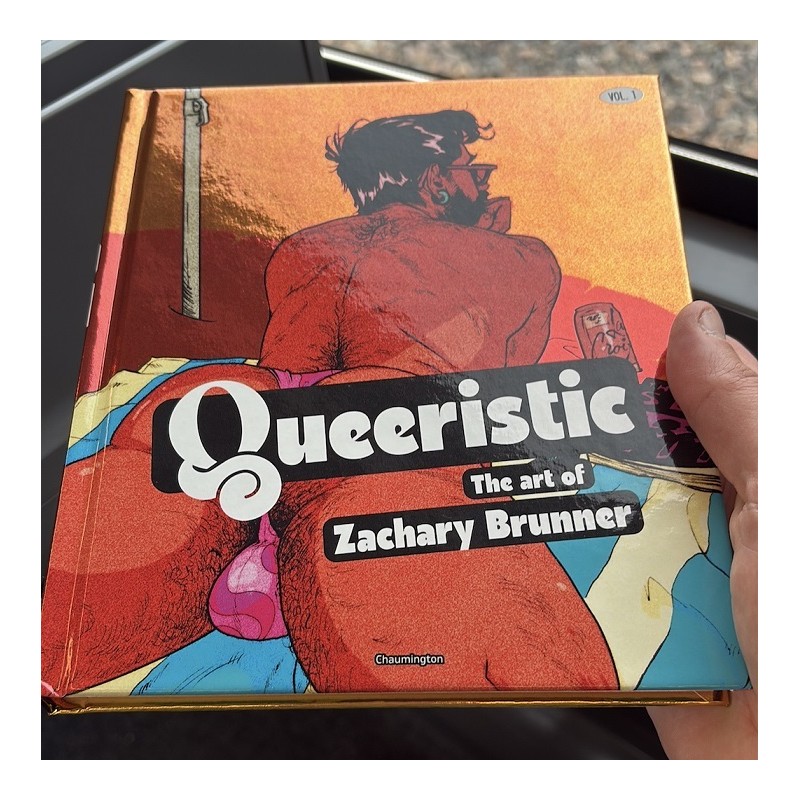 Bienvenue dans Queeristic, une série de livres d'art présentant le travail d'un artiste queer–car Queer +Artistique = Queeristic, bien sûr !Notre premier volume met en vedette les magnifiques œuvres de Zachary Brunner, un artiste basé à LosAngeles et illustrateur extrêmement talentueux, qui excelle dans le dessin d'hommes mignons dans dessituations quotidiennes très simples auxquelles tout le monde peut s'identifier.Que ces beaux mecs se câlinent devant la télévision, cuisinent ensemble, manifestent lors d'un rassemblementou se frottent innocemment les jambes en jouant à des jeux vidéo,Zachary sait raconter une histoire en unseul dessin et y insuffler de l’émotion, ce qu'il a probablement appris lors de ses études de cinéma.Zachary peut également imaginer des cosplays extrêmement créatifs, transformer des personnages d'horreurcélèbres en drag queens perverses et vous montrer à quel point la lutte peut être érotique ! Alors, attachez vosceintures et plongez dans l'univers de Zachary Brunner, plein de couleurs, de câlins, de bons moments, de partsde pizza, de talons hauts et avec unetonne de fesses poilues !
