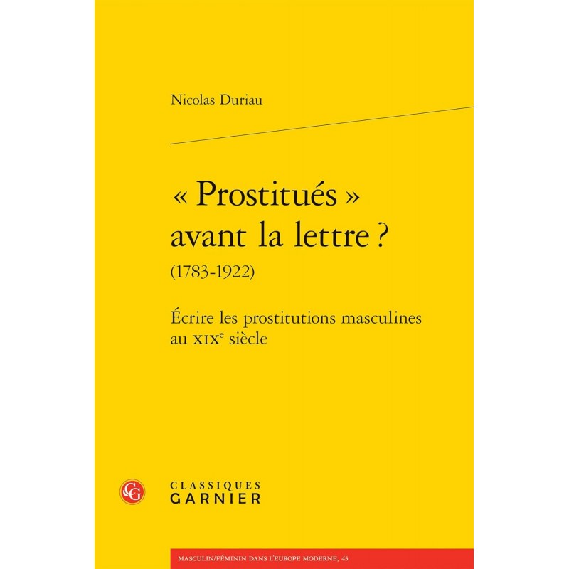 Au croisement de l'histoire littéraire, de l'analyse du discours et des études de genre, ce livre retrace l'évolution de la figure du prostitué - et de ses dénominations avant la lettre - dans le roman d'expression française, du tournant des Lumières au début du XXe siècle (1783-1922).