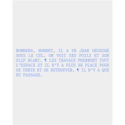 Biche est insatiable, Biche collecte les coups, les fantasmes, les possibles. Biche ne dit jamais non. Tout* le traverse et devient support d'une écriture-kaléidoscope d'images désirantes collectées dans la rue, les bars, les transports en commun** : enfin enfin ENFIN de la p*oésie p*édée *p*orno (PPP***) hyper sexy, hyper brûlante. & parce que véritable p*édée, un peu mélancolique (aussi - on ne se refait pas). bref, vraiment le texte parfait, qu'on attendait, l'indispensable de vos futures déambulations urbaines
